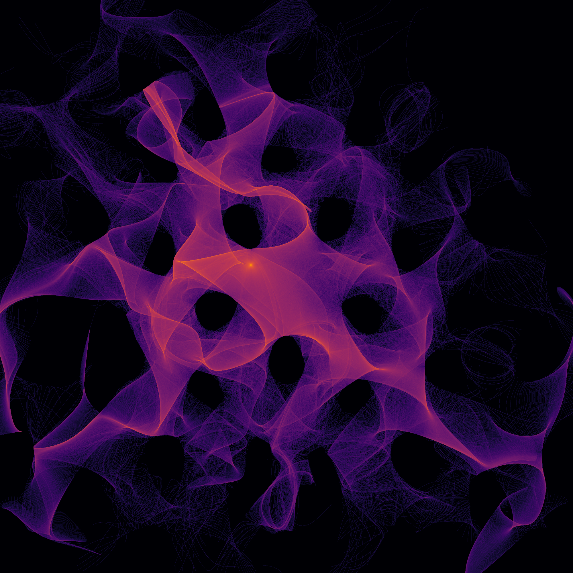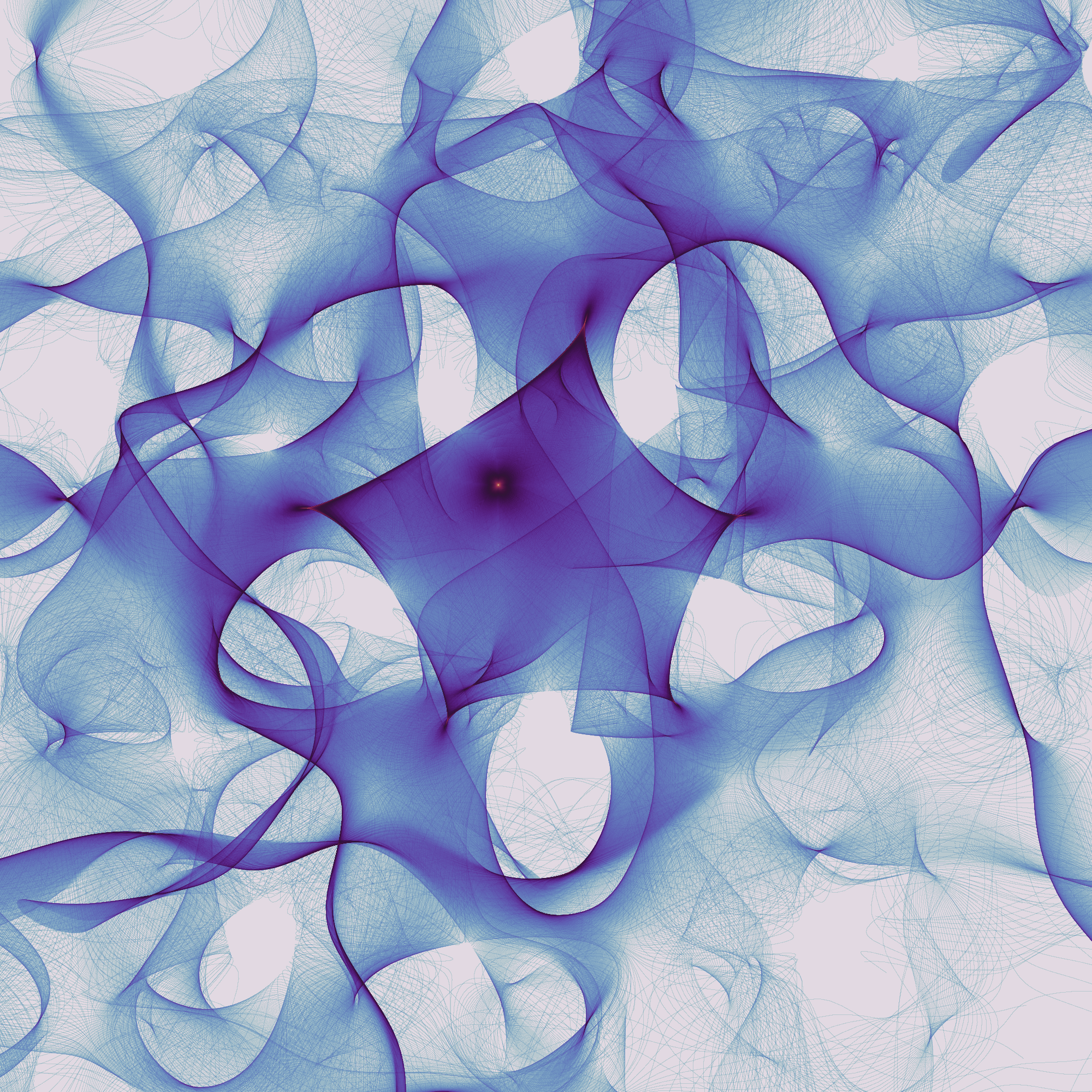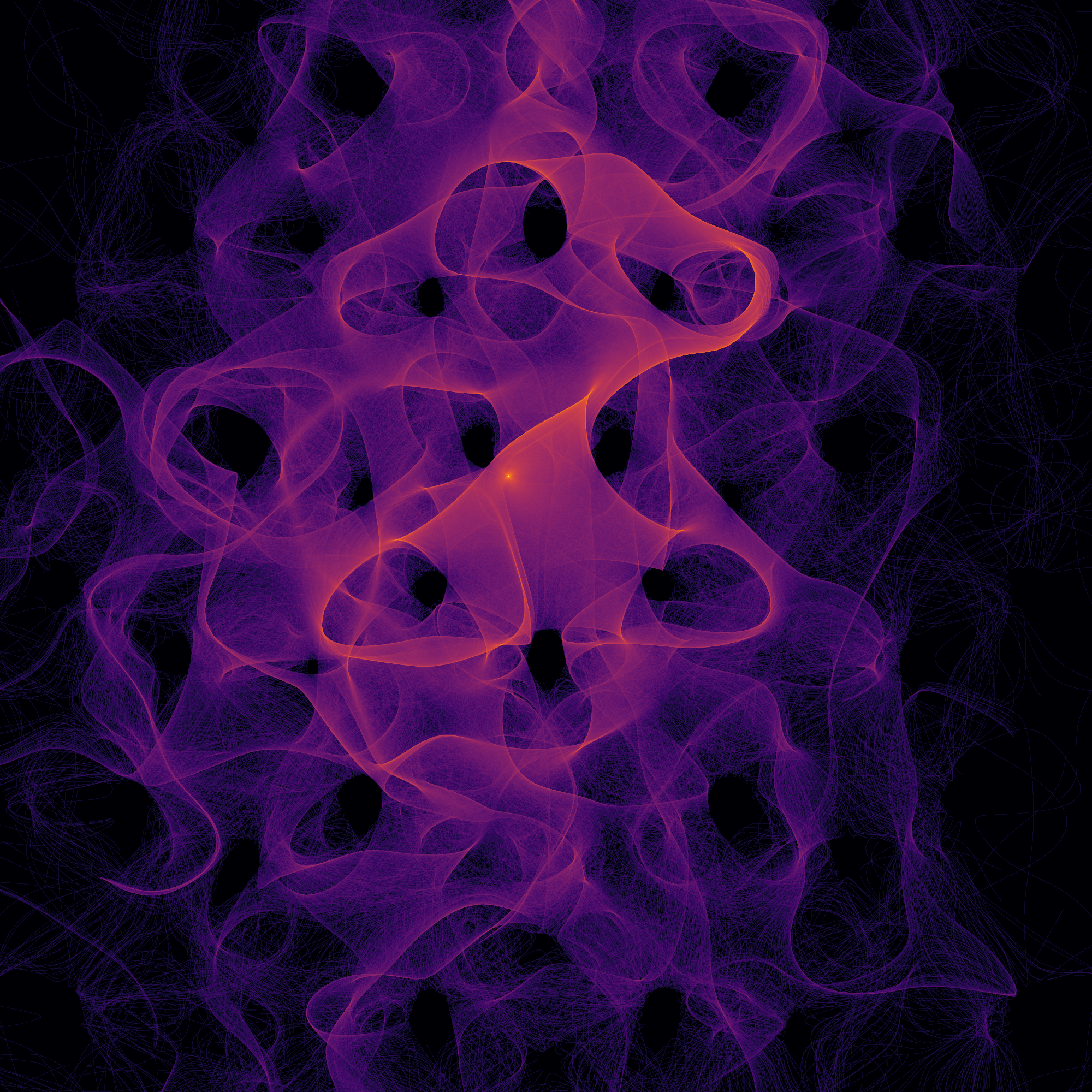 10000 particles are propagated from the center in a 5-fold symmetric potential.